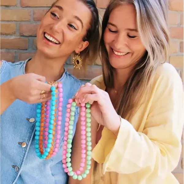 Kralen zijn de up-coming trend en ik kon het niet laten deze leukerds in te kopen. De natuurstenen kralen ketting is een musthave voor je sieraden collectie. Door de grove kralen en heldere kleuren past je ketting bij iedere outfit. Mix & match met de andere sieraden om je look compleet te maken.