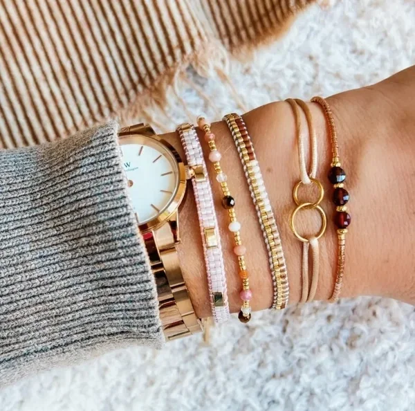Het weef armbandje is voorzien van een schuifknoopjes en daardoor verstelbaar.