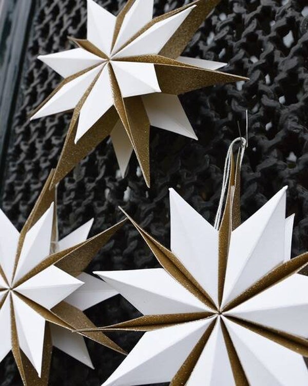 De sterren worden plat geleverd (handig op te bergen) en zijn in een paar simpele stappen in elkaar te zetten. Elke ster heeft een koordje waarmee je ze meteen kunt ophangen.