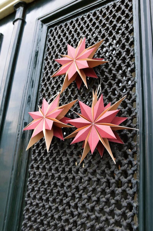 De sterren worden plat geleverd (handig op te bergen) en zijn in een paar simpele stappen in elkaar te zetten. Elke ster heeft een koordje waarmee je ze meteen kunt ophangen.